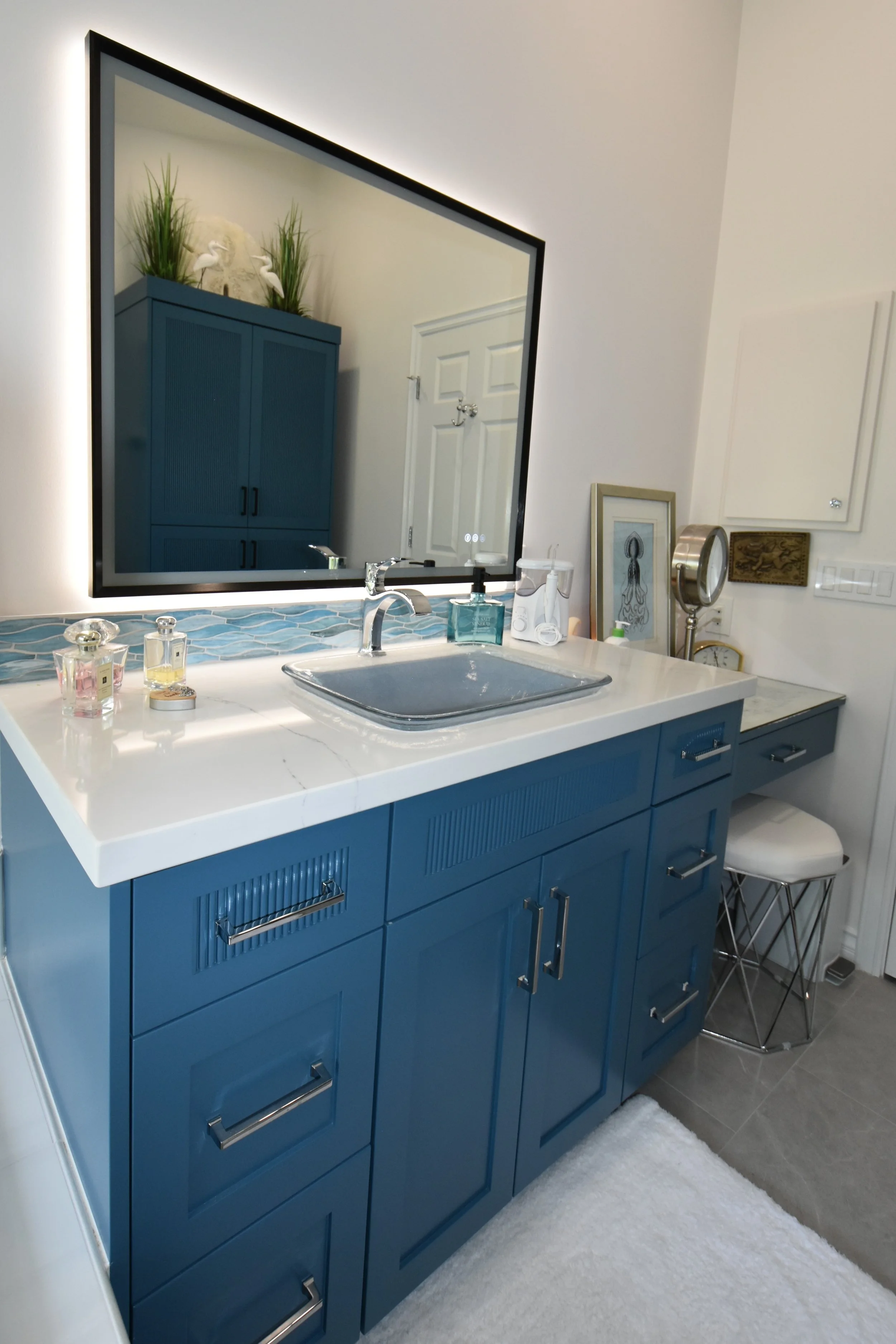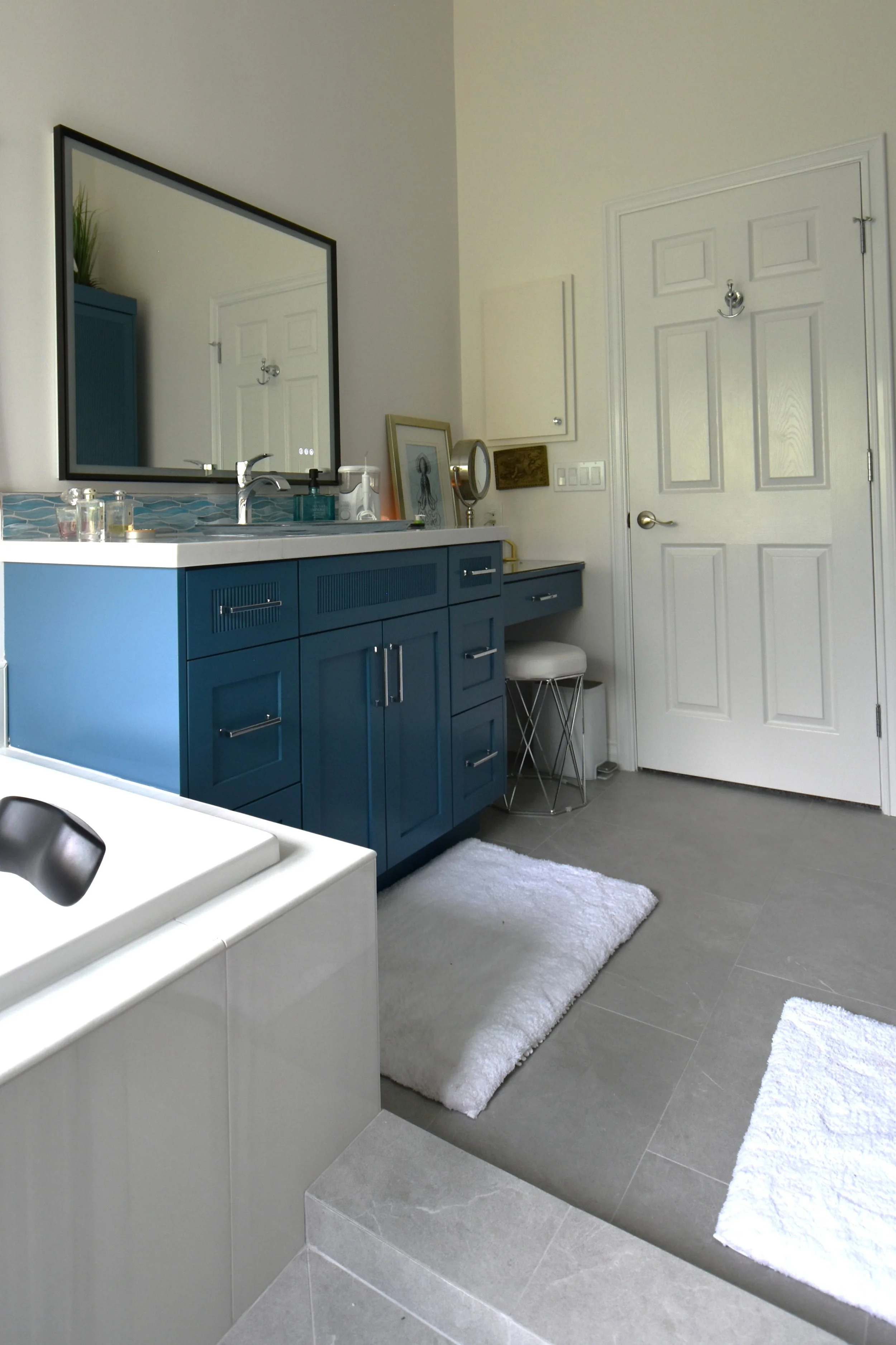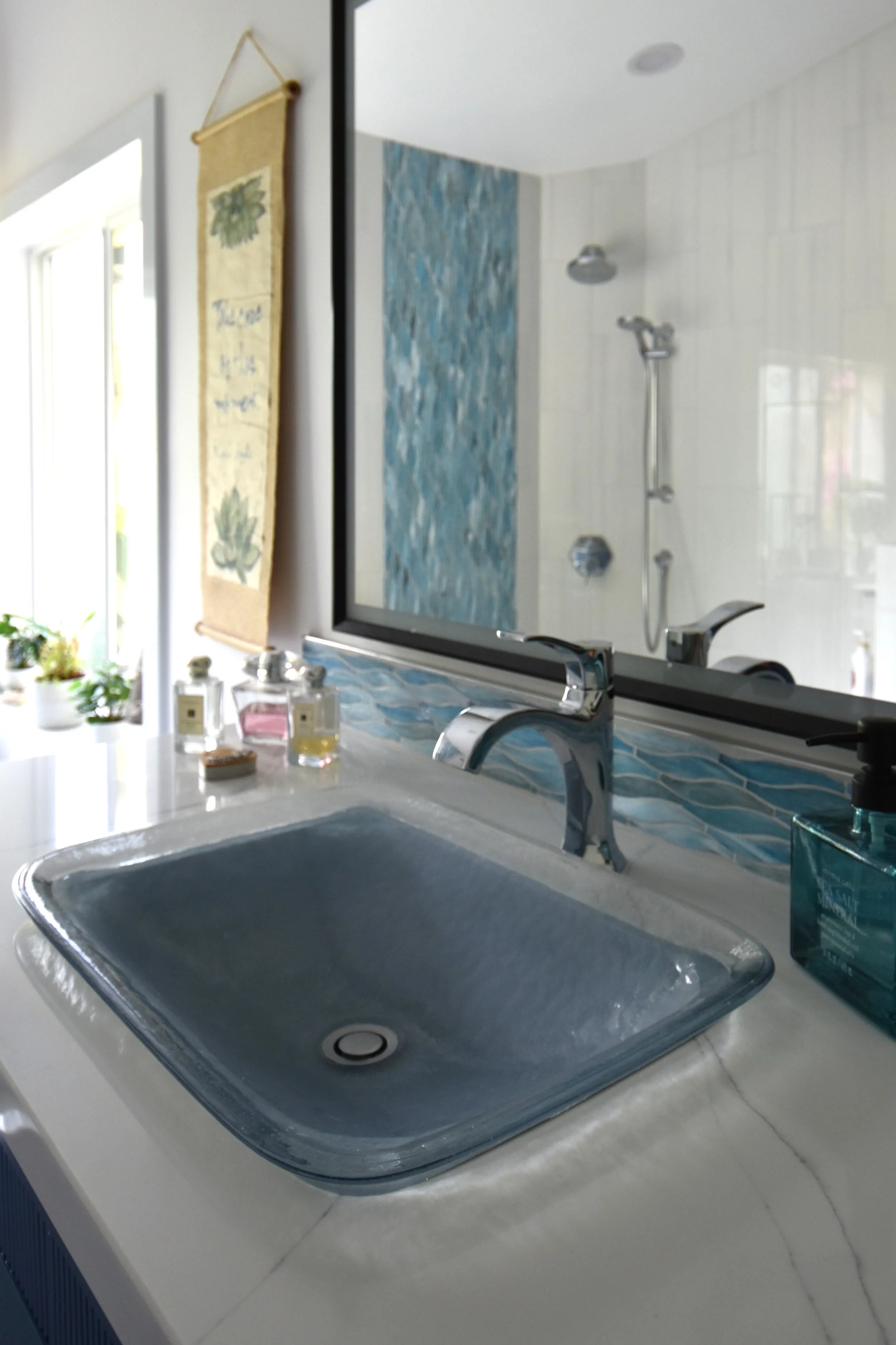 I had the most fun working on this bathroom project. Together, my client and I created this relaxing and cheerful, primary bathroom. It all started over a year ago with a kitchen remodel, laundry area, guest bath re-fresh and wrapped up with the primary bathroom.